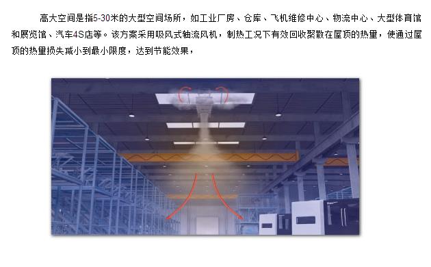 2.采暖循环风量大.热风采暖系统的空气循环量越大,温度场越均匀,采用经济型吊顶暖风机,可以实现热风采暖的同时,空气循环量是其它进口品牌产品的1.5~2倍,所以,实现的温度场均匀度,要优于进口同类产品.