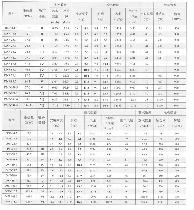 6.加热介质多样化.有完整的蒸汽及热水为热媒的详细参数,同时还可提供电加热为热媒的暖风机.